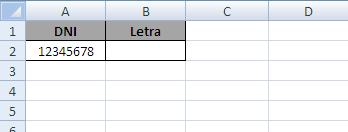 Abramos nuestro listado de DNI y al lado de la columna de los números, creemos una para la Letra.